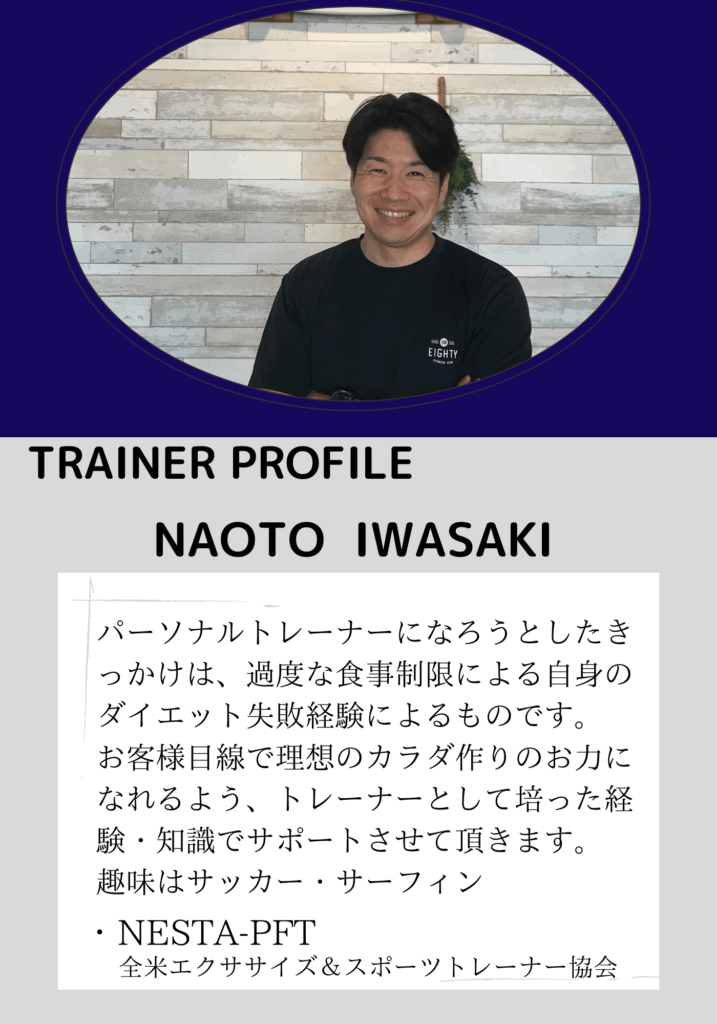 はダイエット・筋力アップ・競技力向上・運動不足解消など、経験豊富なパーソナルトレーナーがマンツーマンでお客様の目的に合わせたトレーニング・食事指導により、理想のカラダを実現できるよう徹底サポートいたします。